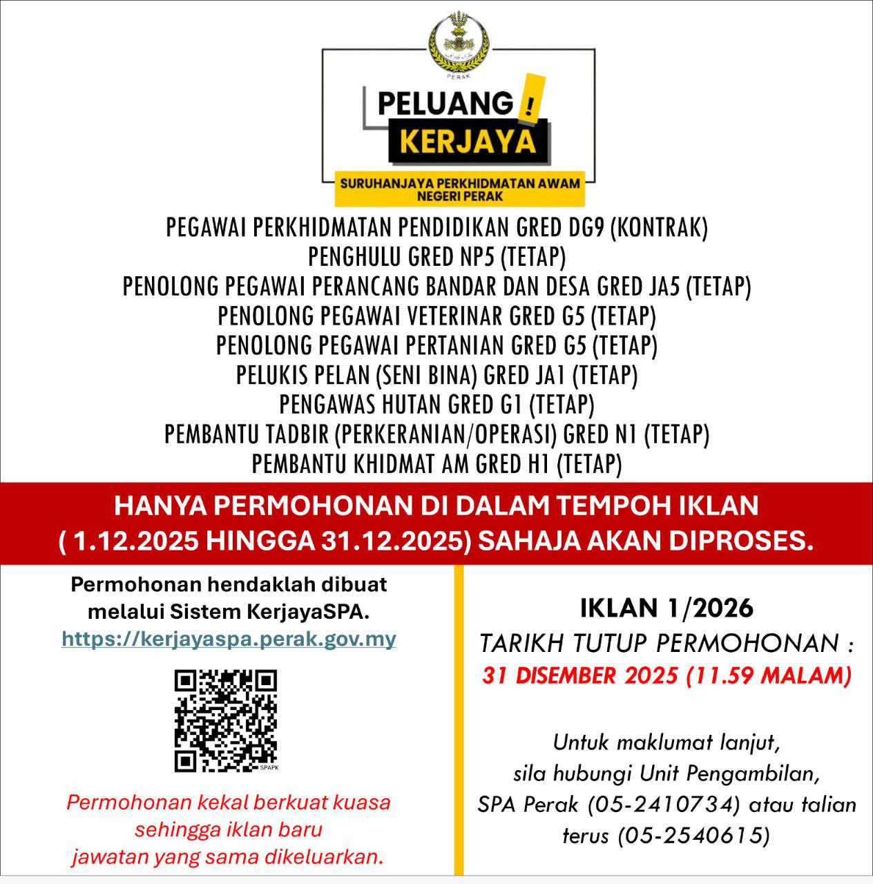 IKLAN PELBAGAI JAWATAN KOSONG DI SURUHANJAYA PERKHIDMATAN AWAM (SPA) NEGERI PERAK